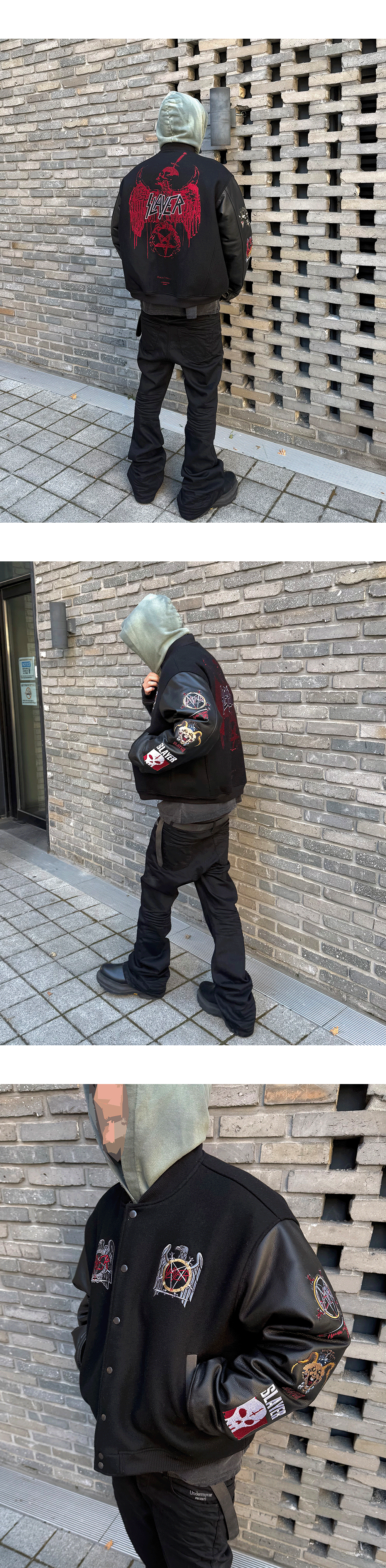 VARIOUS LOGO EMBROIDERED VARSITY JACKET - BLACK