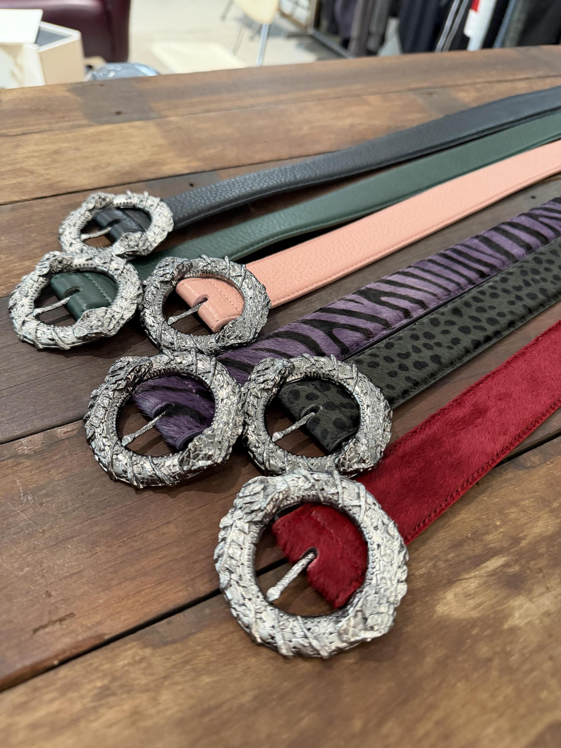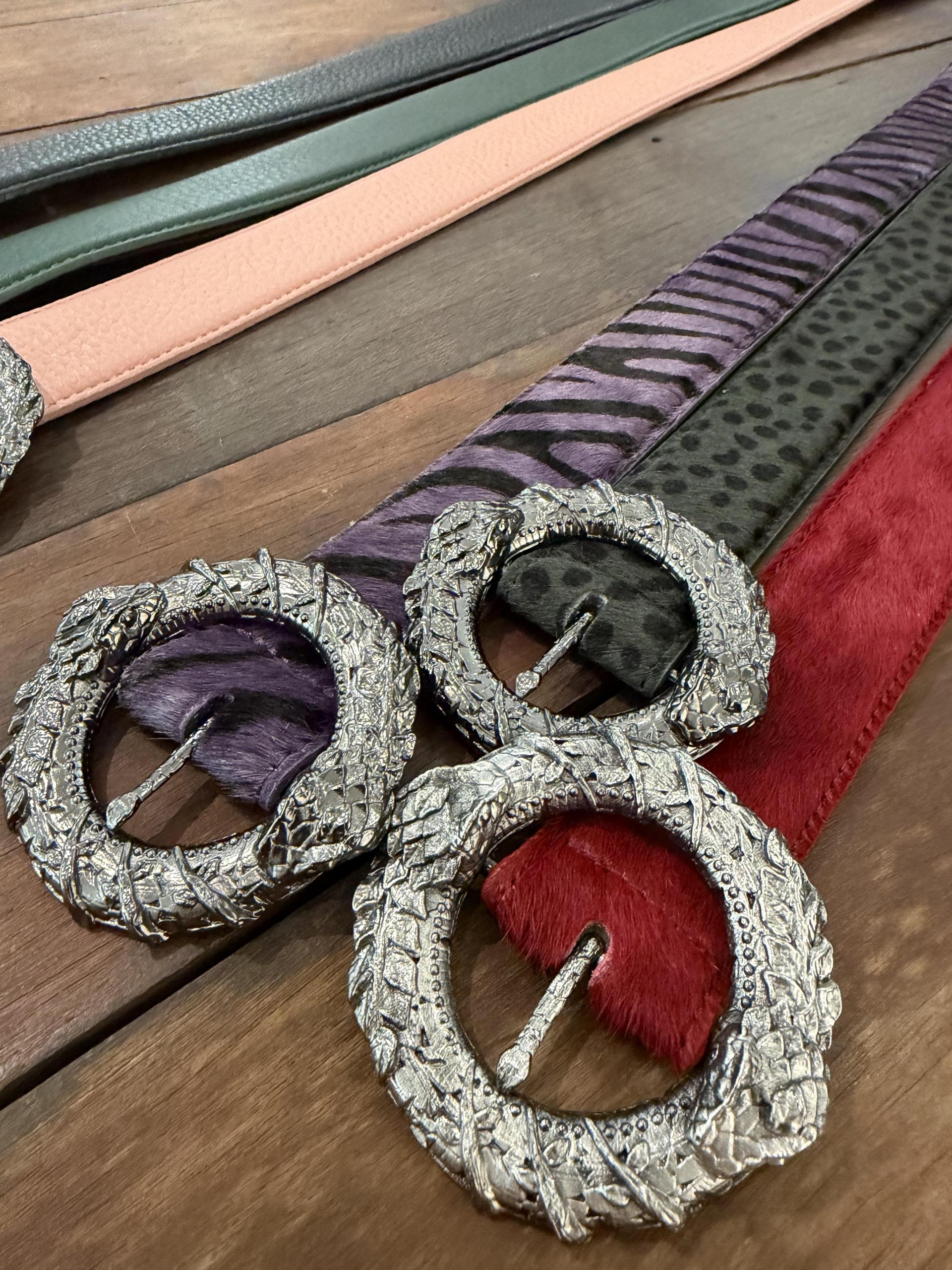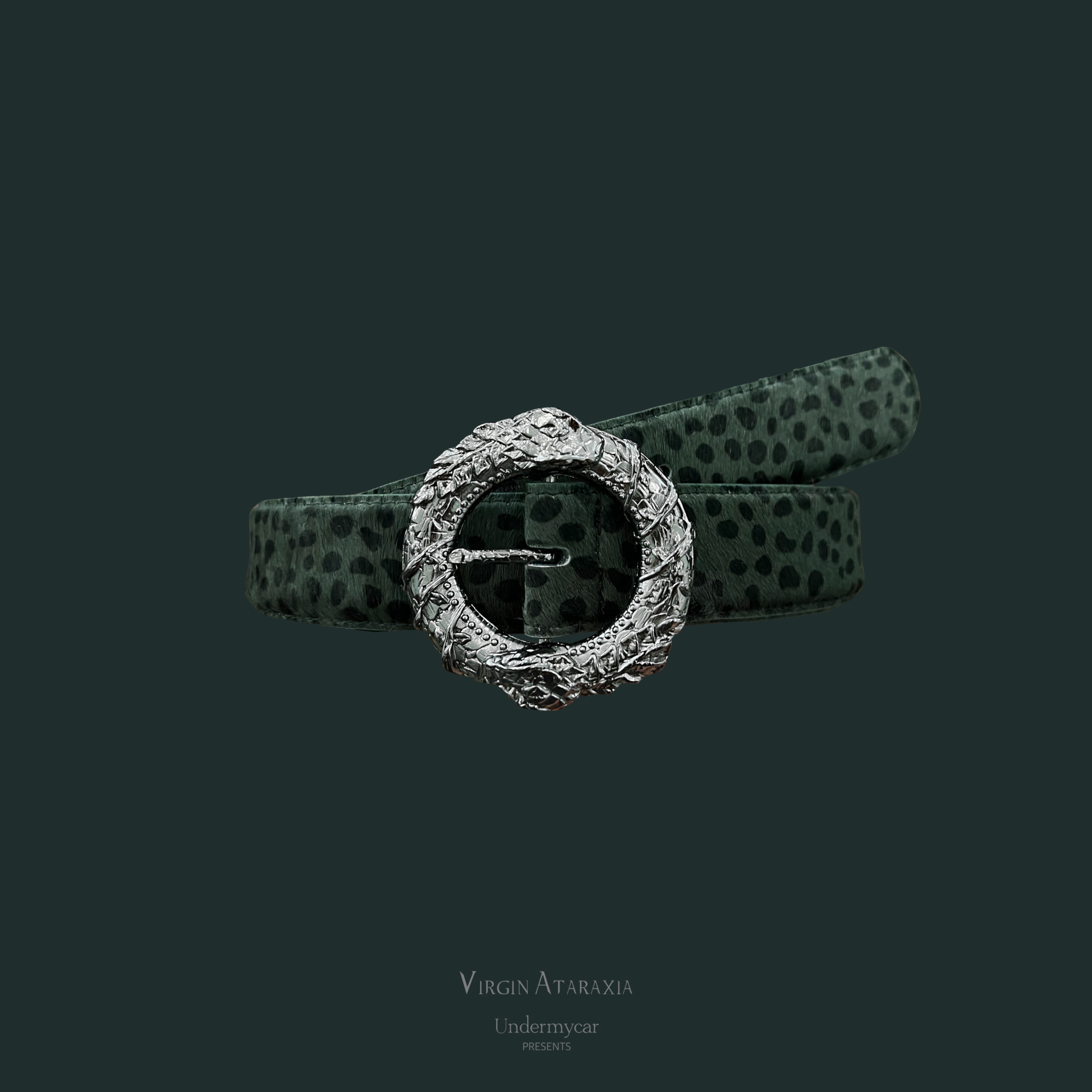 25FW OUROBOROS LOOP BUCKLE CALF HAIR LEATHER BELT - CHEETAH GREEN