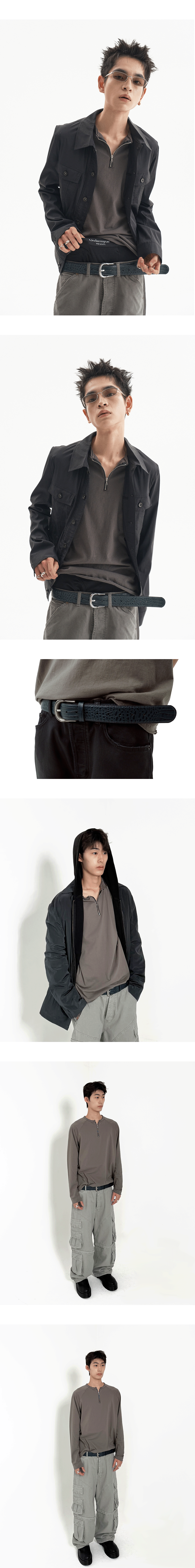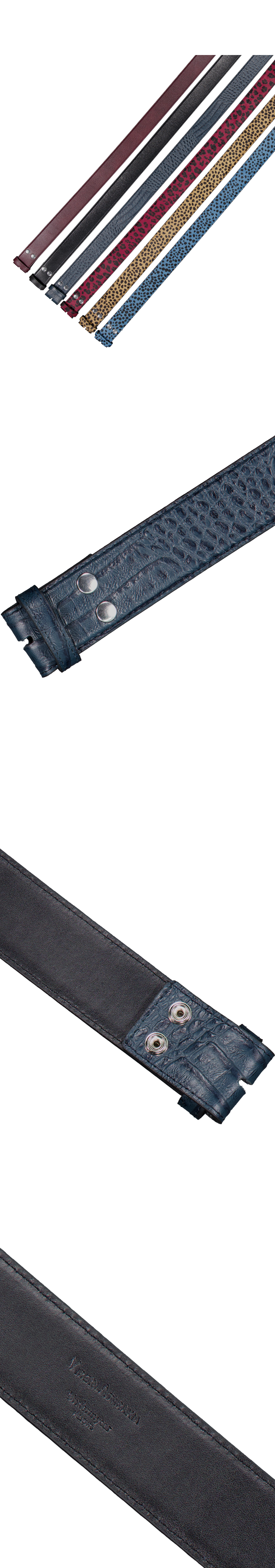 A 1.5-inch cow leather belt strap embossed with a crocodile pattern.