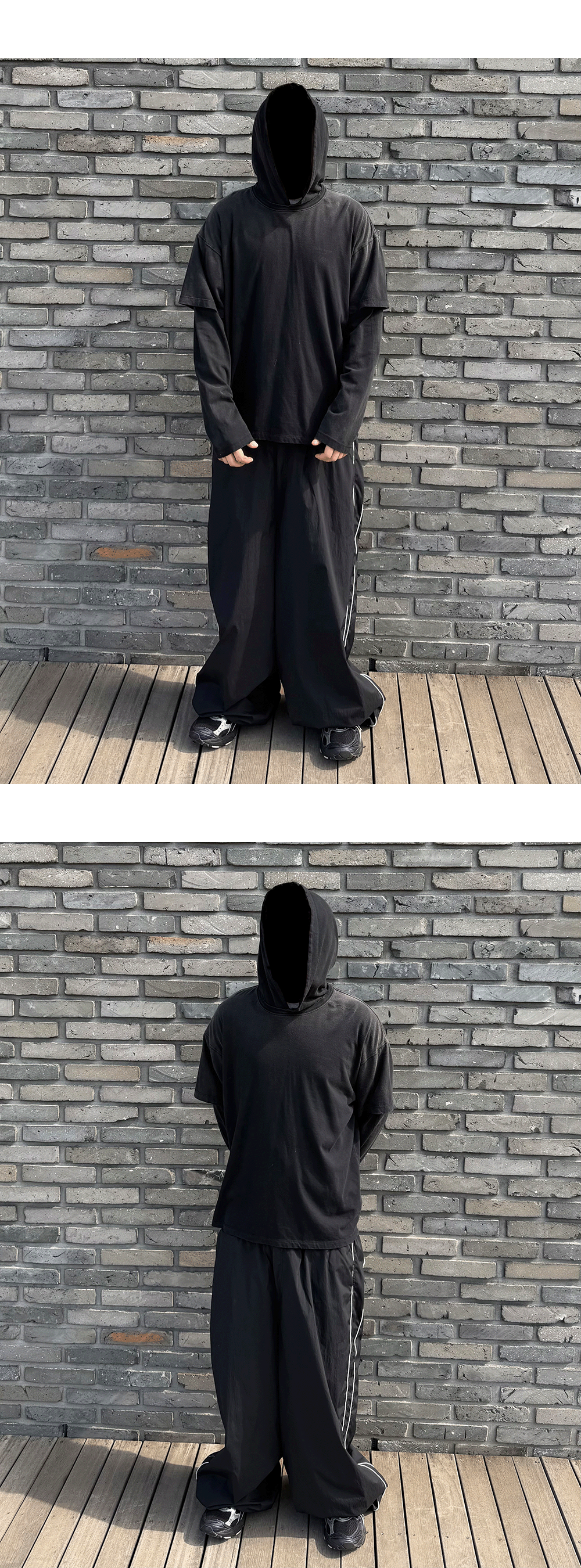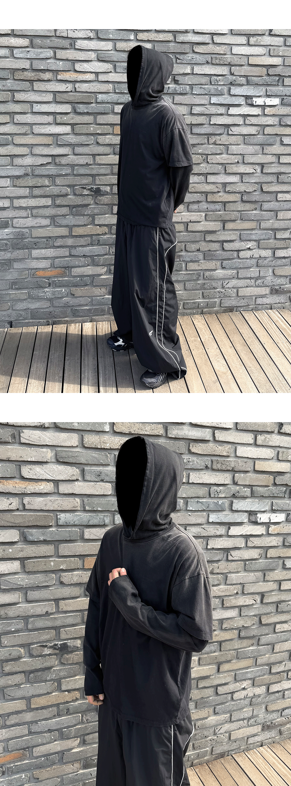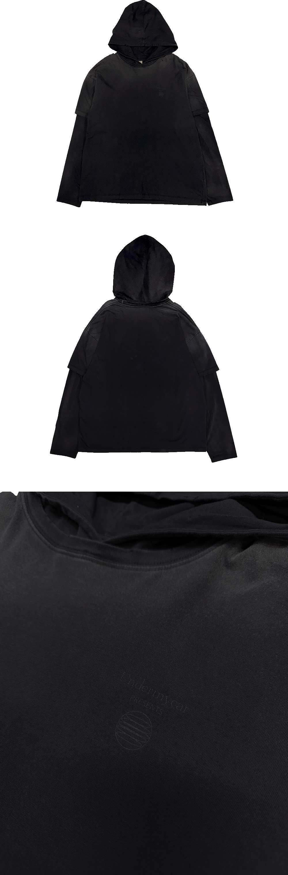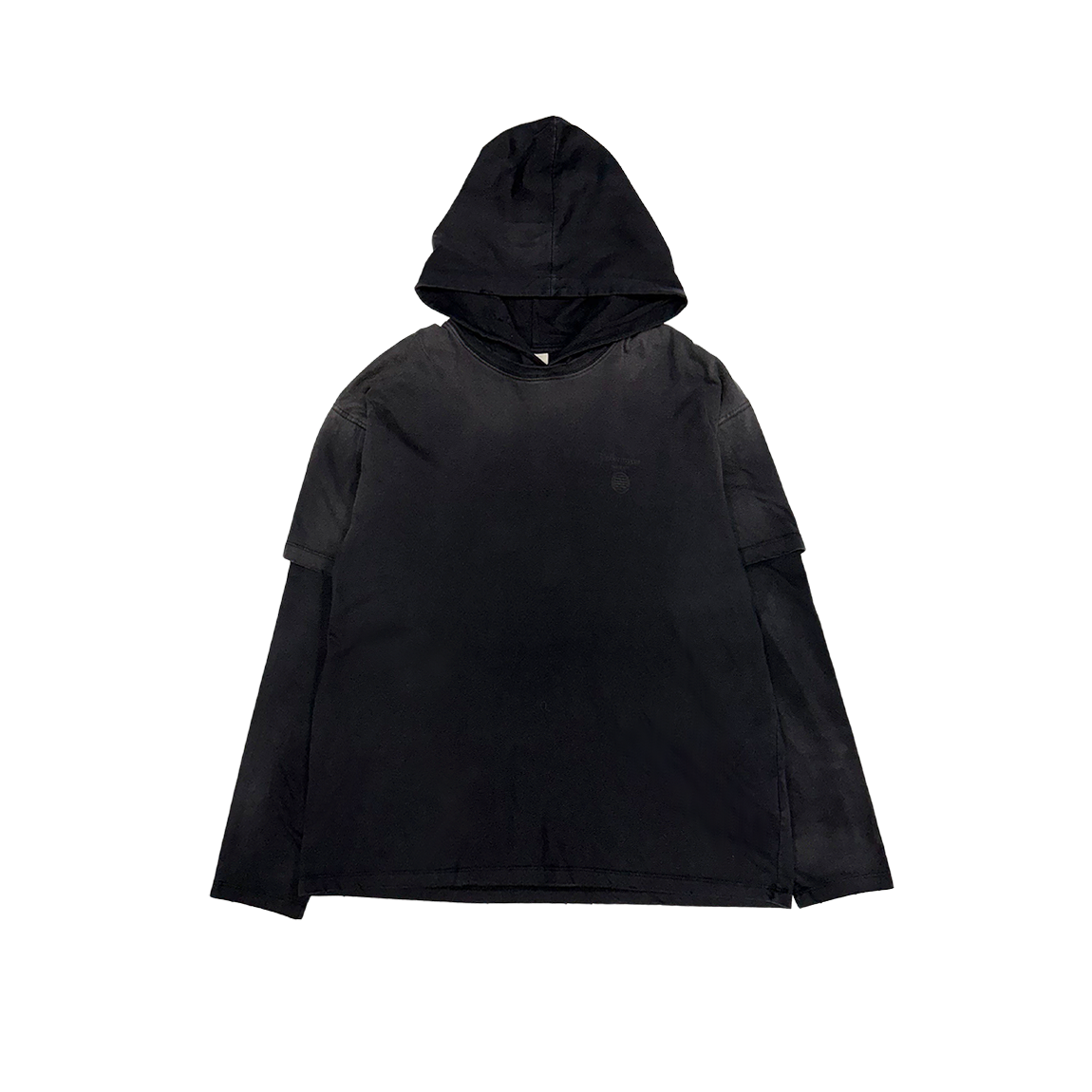 MU.131 Combi Brush Washed Layered Hoodie Black / Black