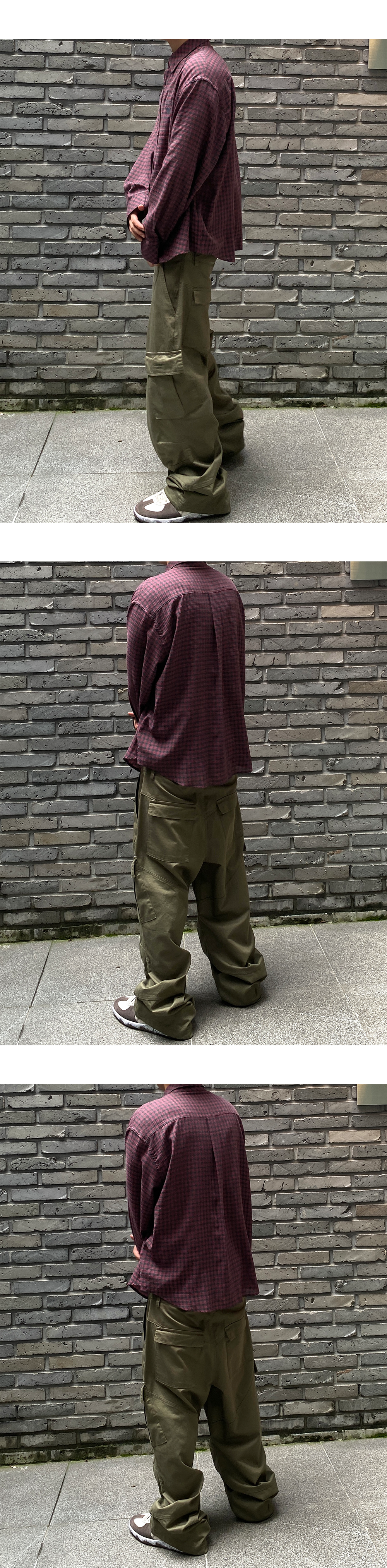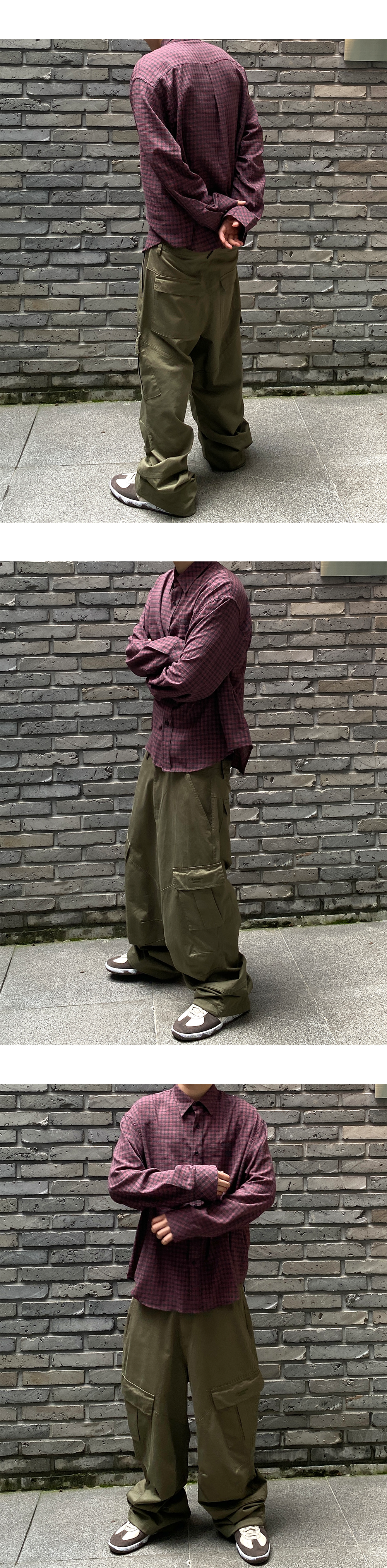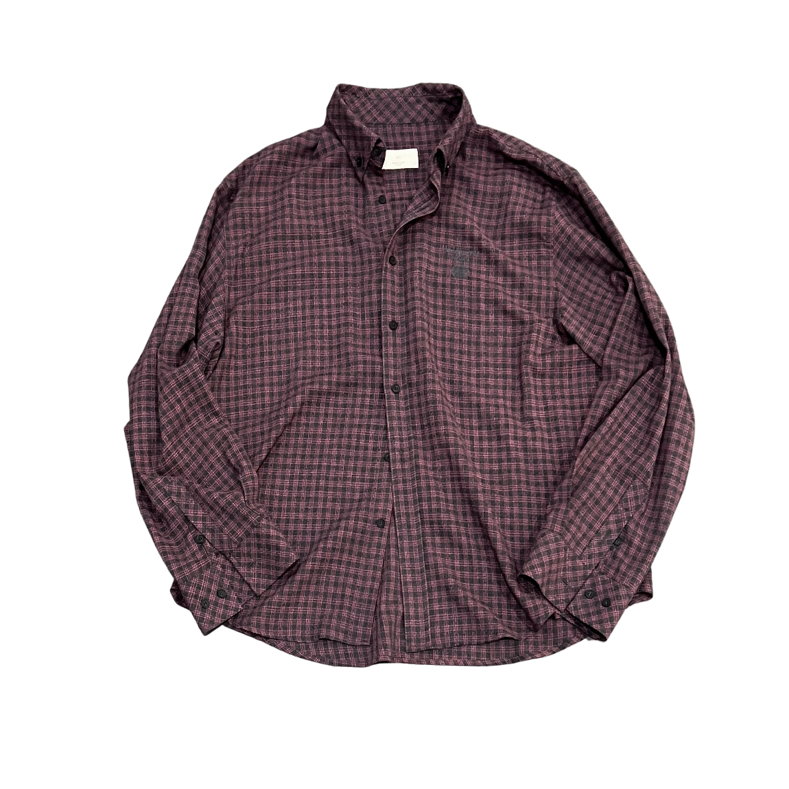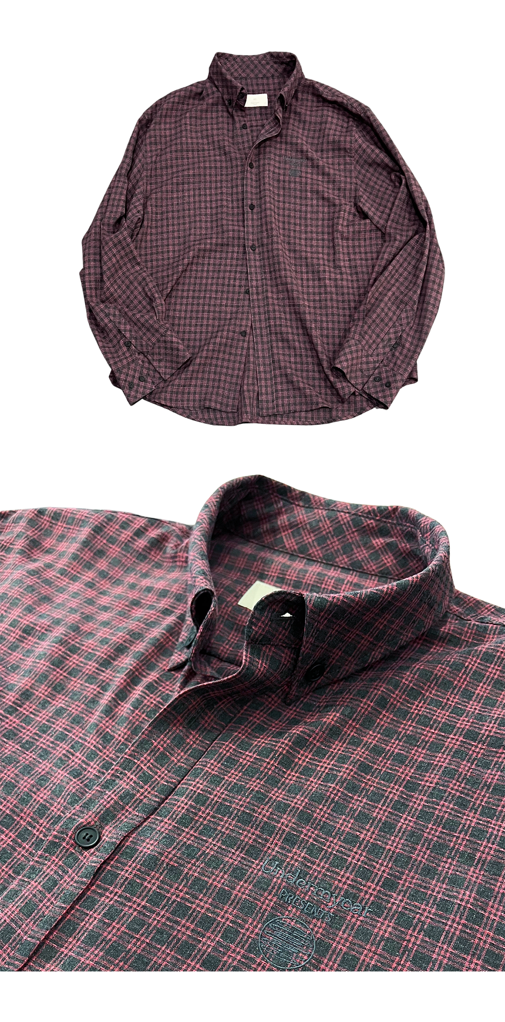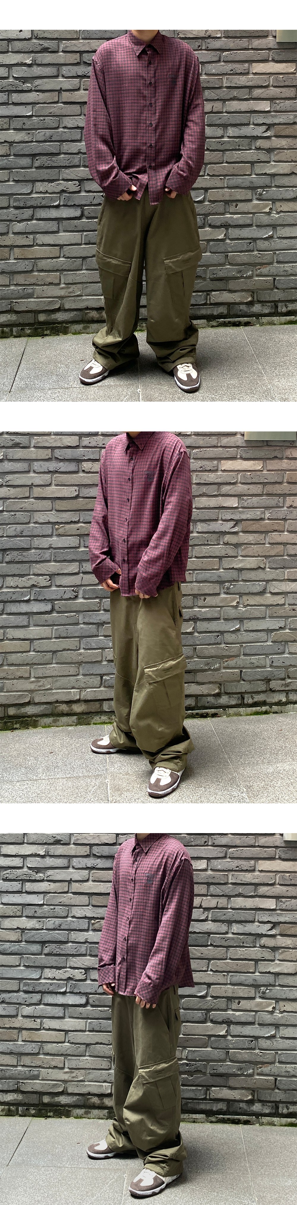 MU.135 Circle Logo Basic Long Sleeve Check Shirts Pink Gray