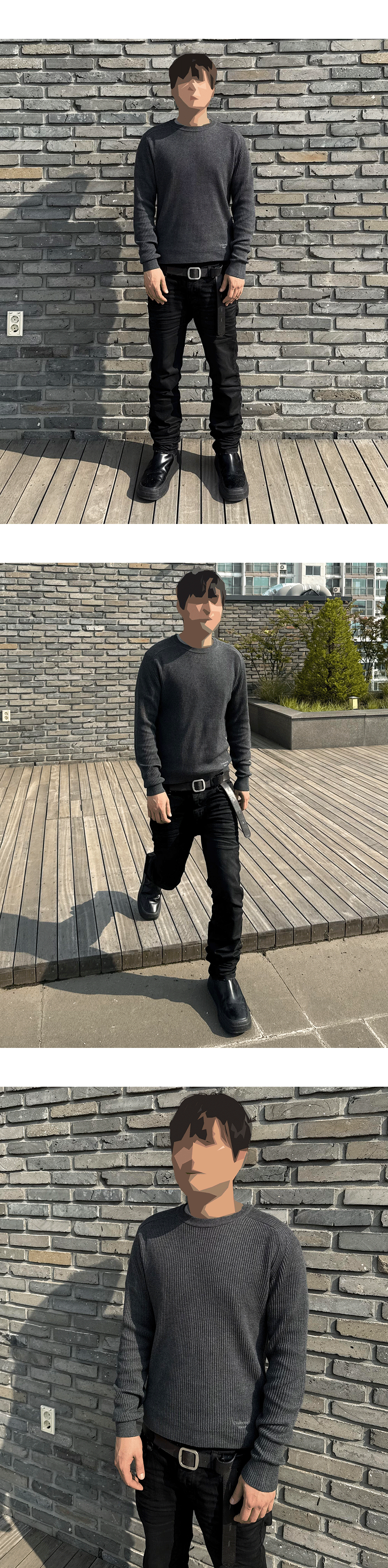 MU.141 Classic Logo Rib Slim Knit Sweater Dark Gray