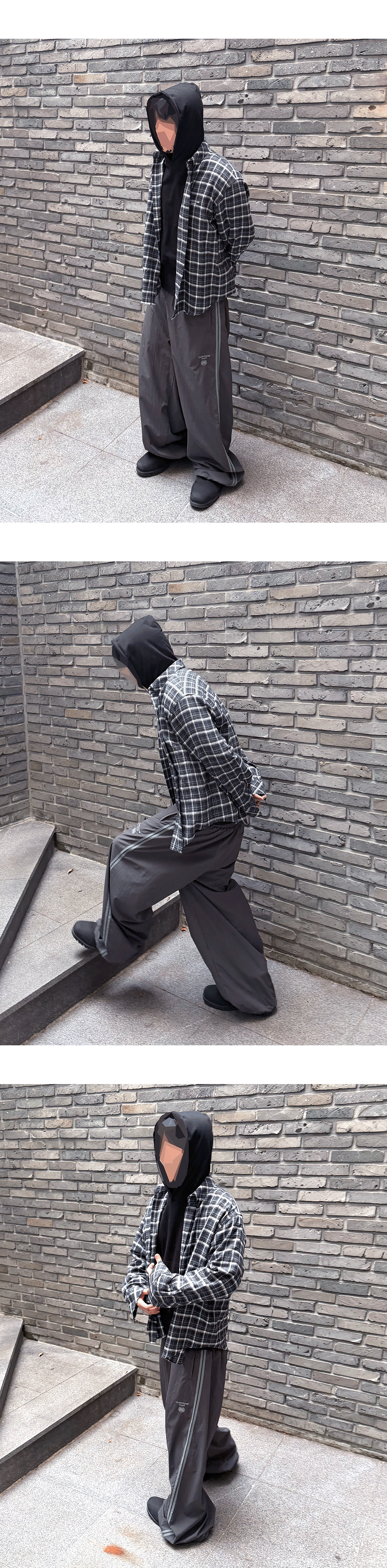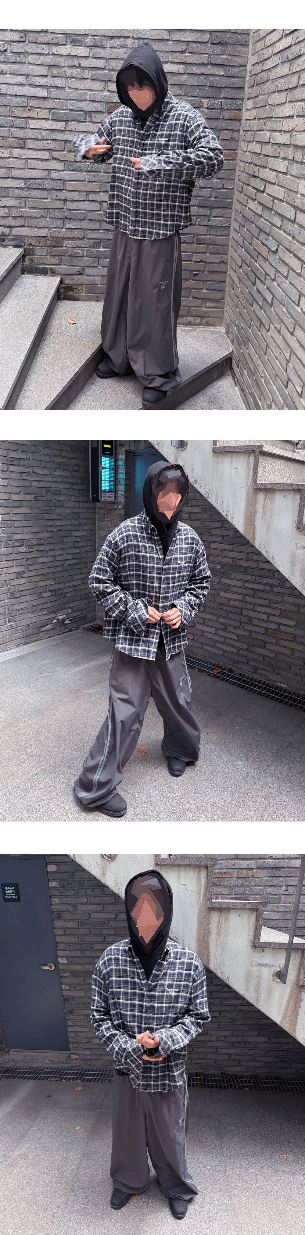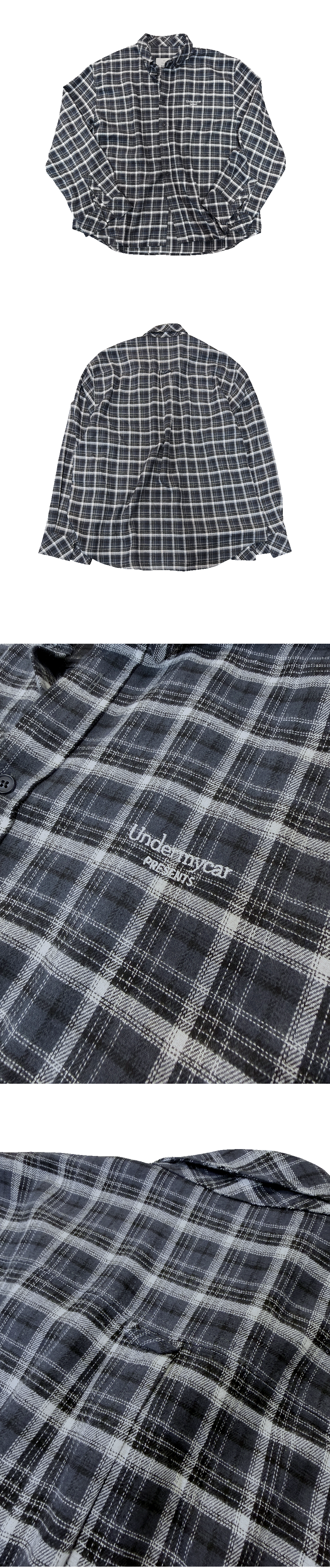 MU.155 Classic Logo Basic Long Sleeve Flannel Shirts Navy White