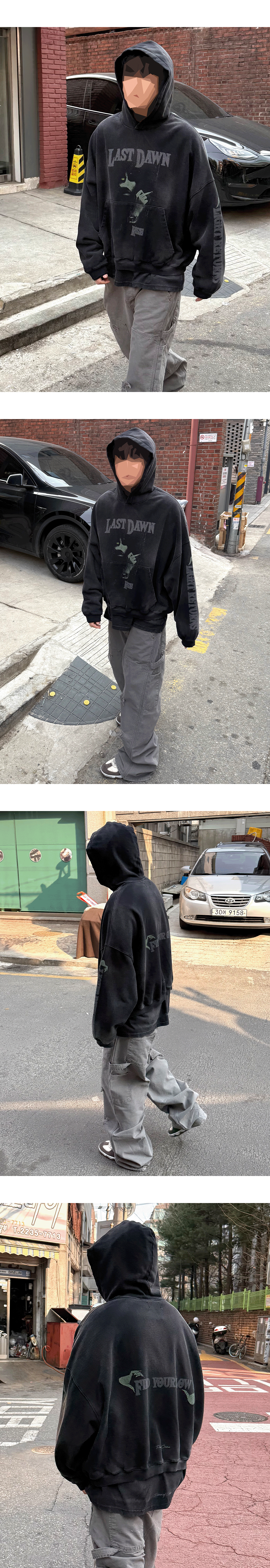 LAST DAWN VINTAGE WASHED HOODIE - BLACK