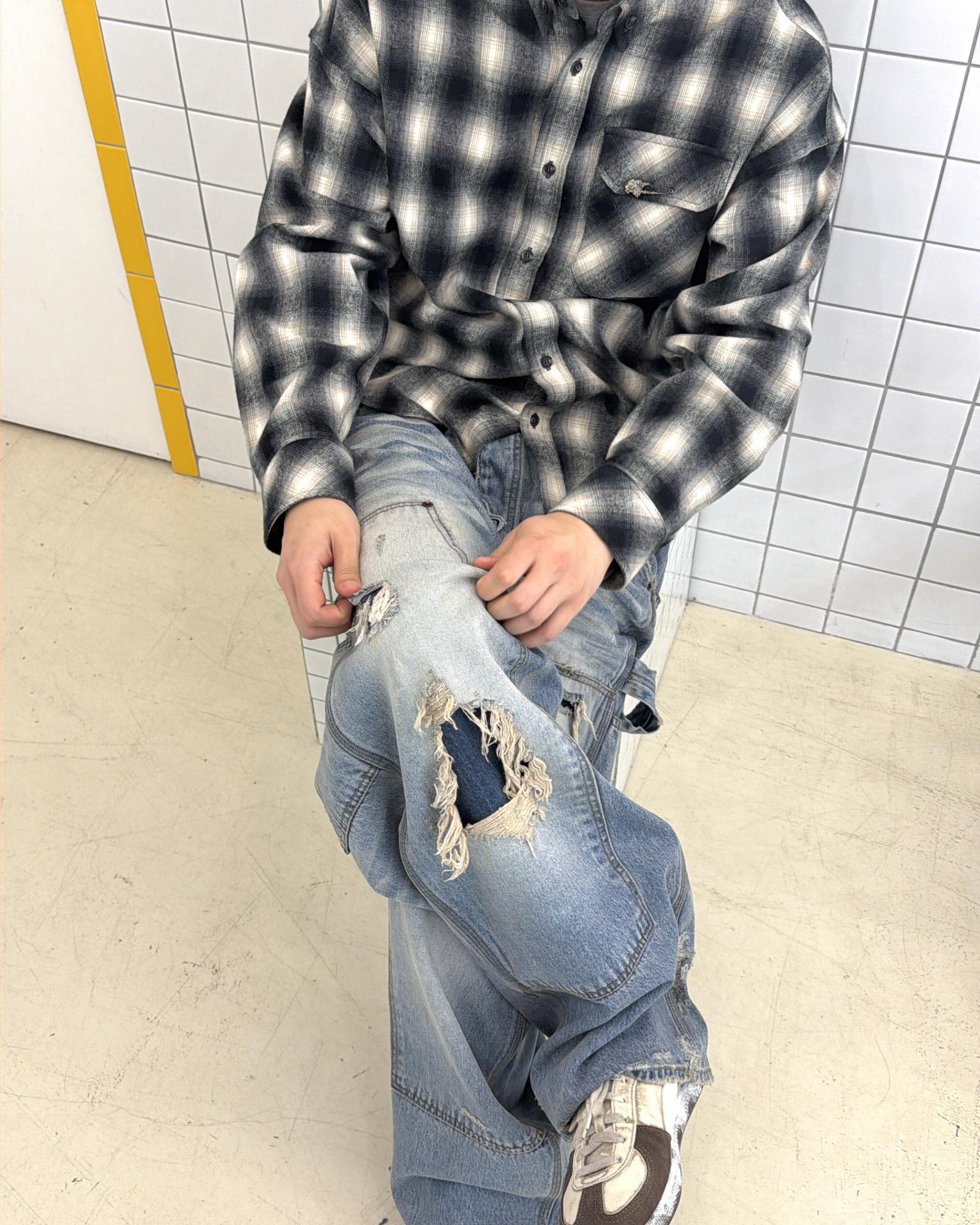 25FW BLACK ROSE PIN OMBRE CHECK SHIRTS - BEIGE BLACK