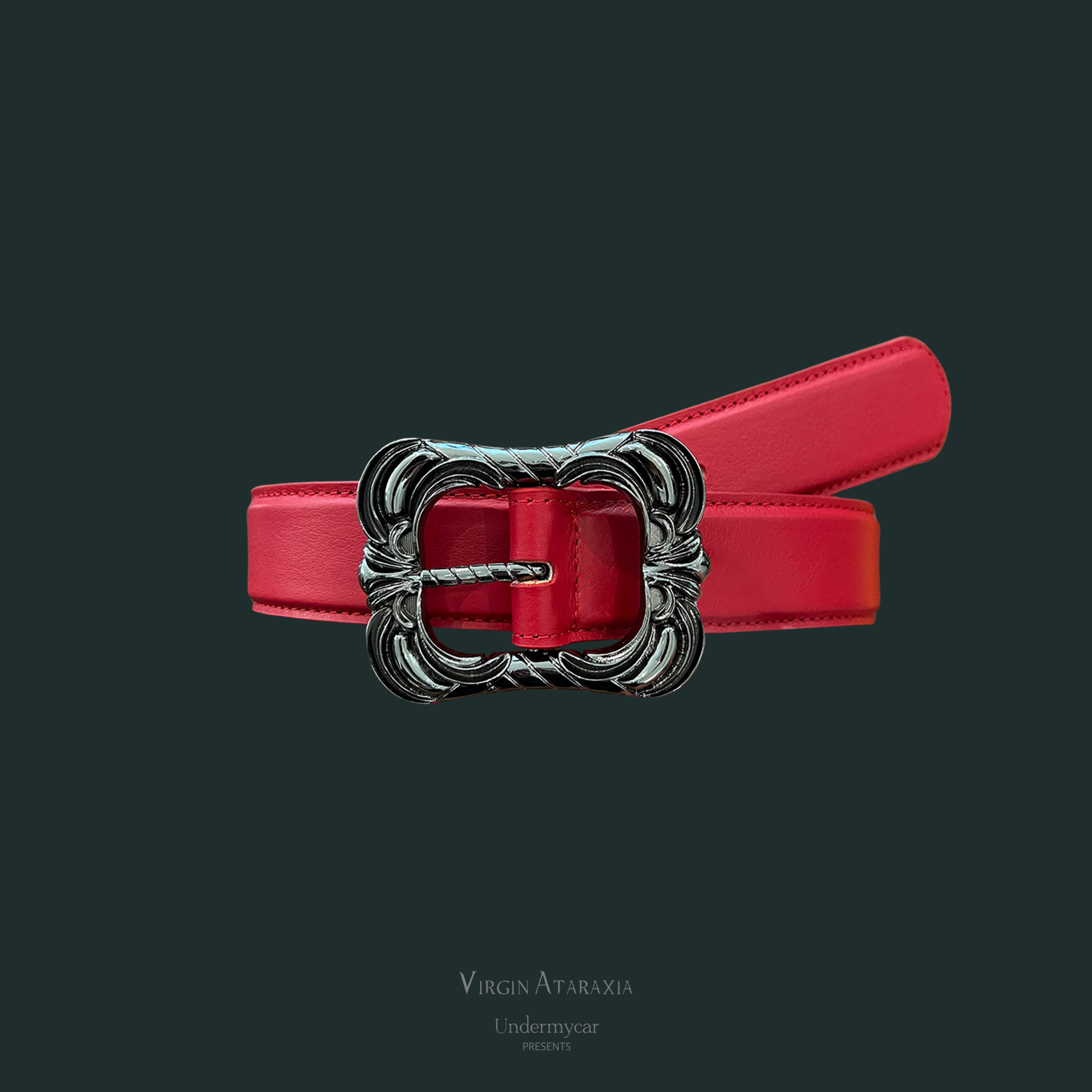25FW DOUBLE FLORAL BUCKLE PLAIN LEATHER BELT - RED