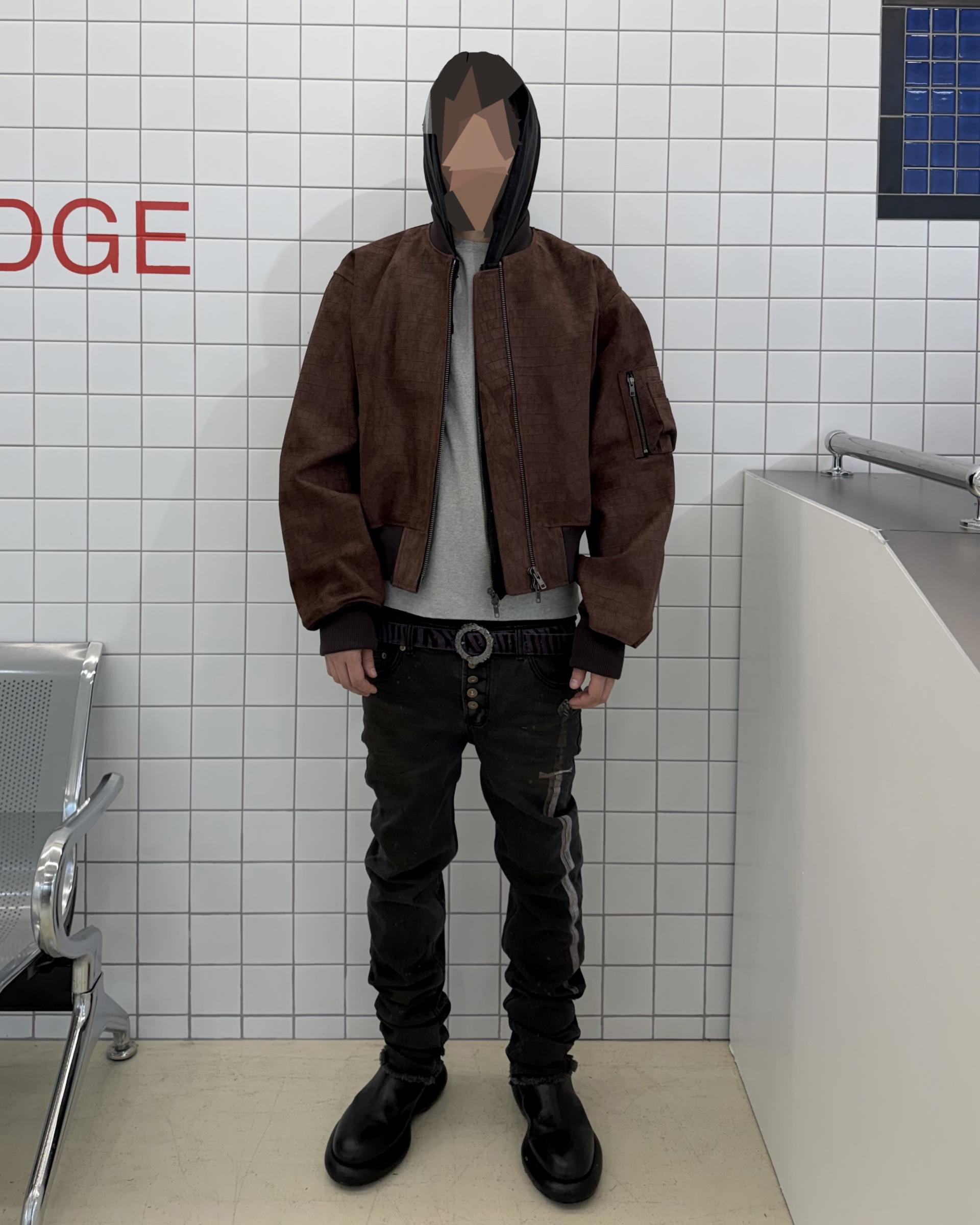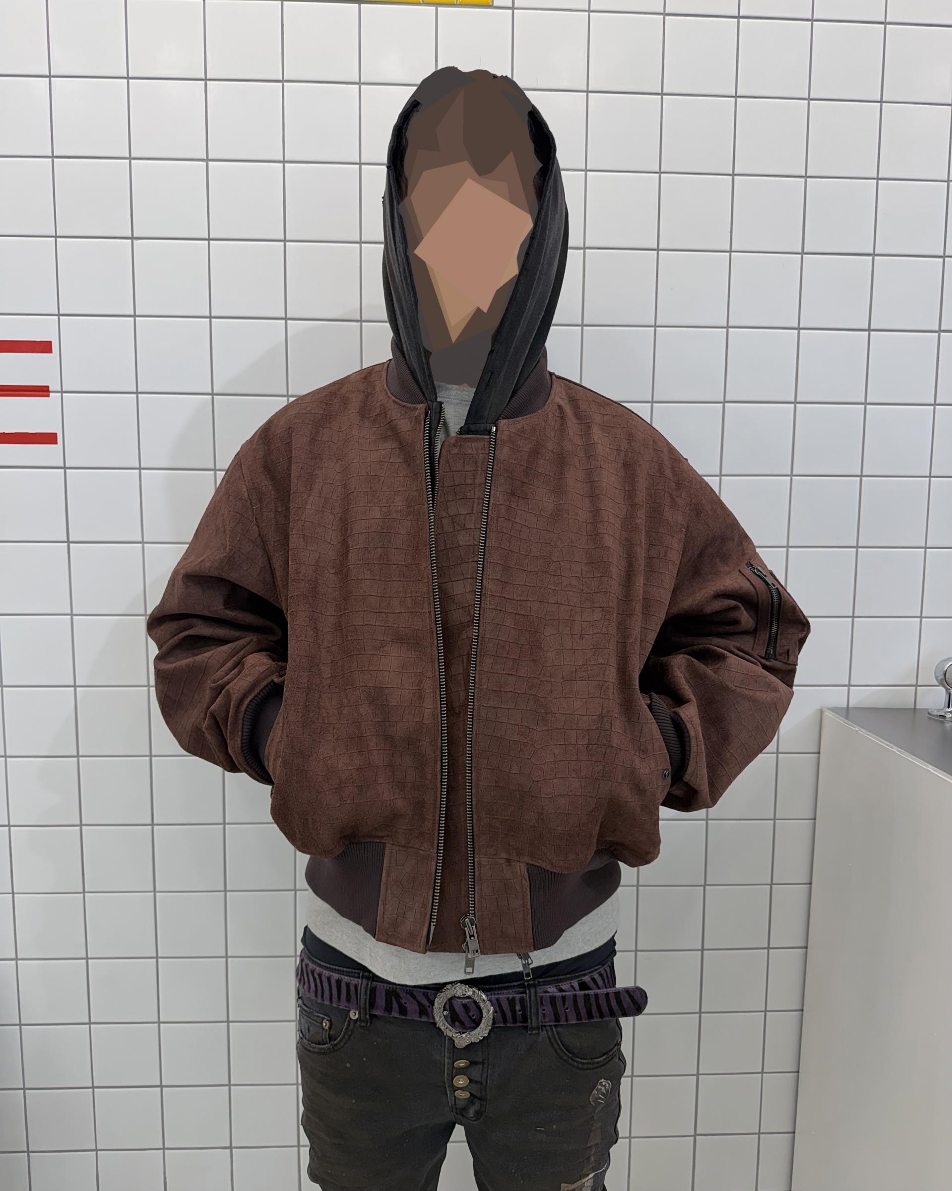25SS RED ALLIGATOR EFFECT MATT SUEDE MA-1 - MATT RED