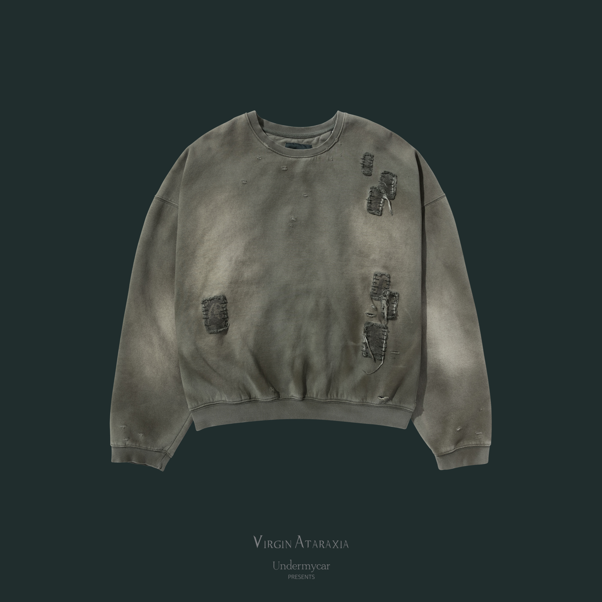 25SS MULTI LITTLE PATCHES GRUNGE CREW NECK - DIRTY GREEN