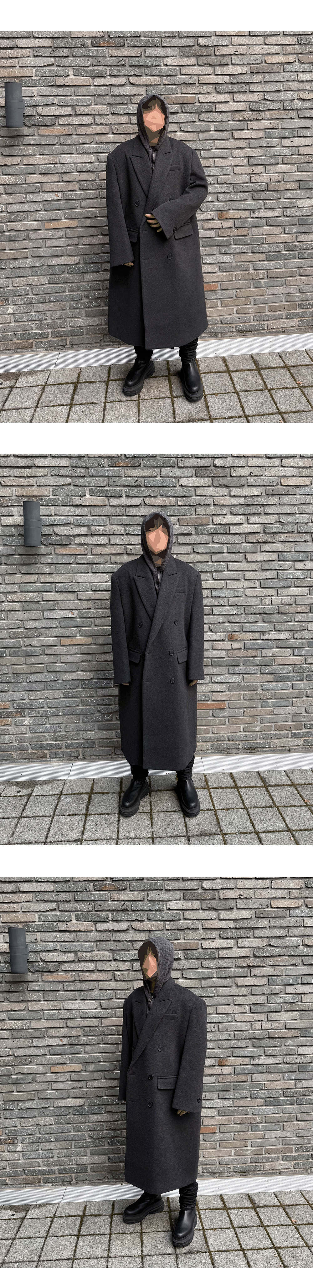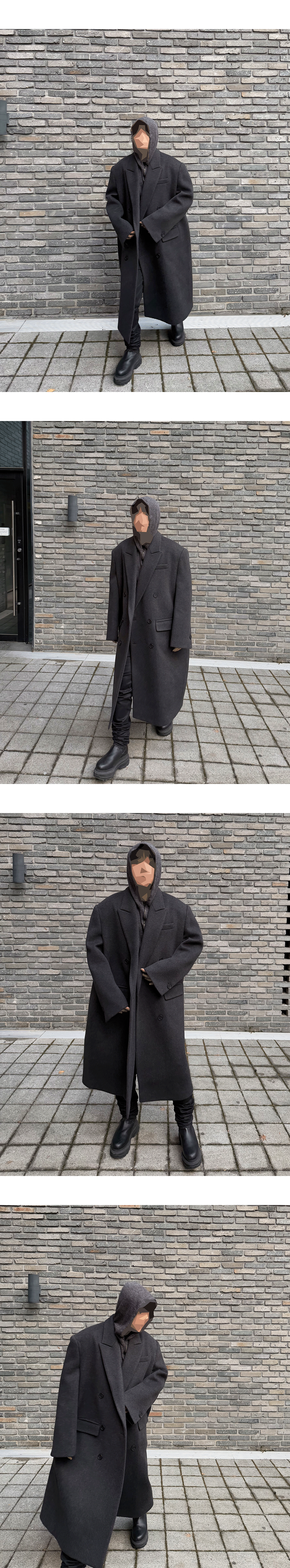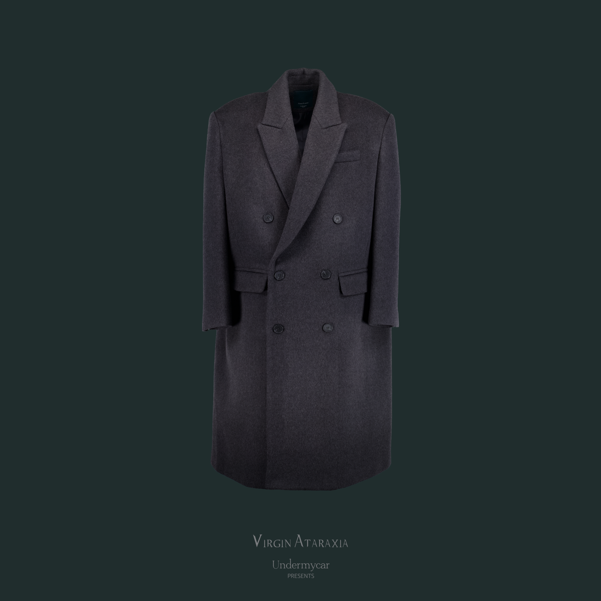 A double coat featuring sharp shoulders and an elongated silhouette, reminiscent of a mafia-inspired style.