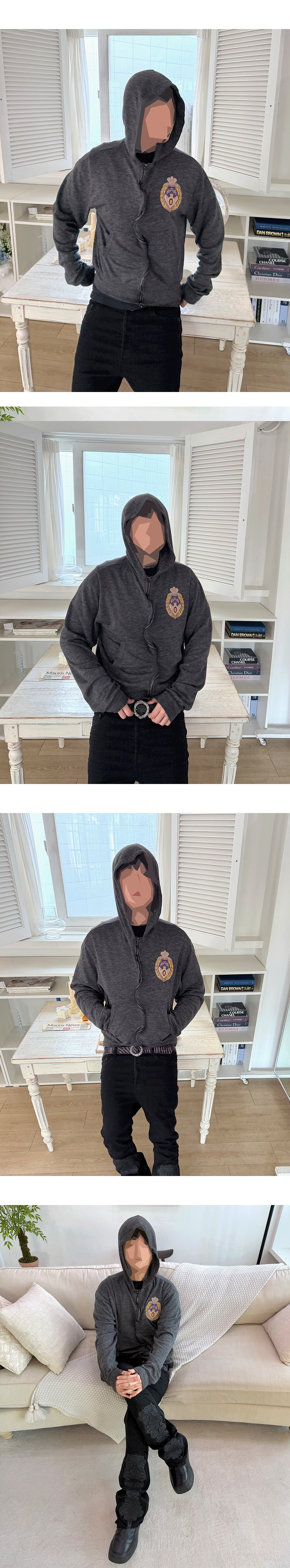 25FW FALLEN ROYAL PATCH WAVING ZIPPED HOODIE - DARK MELANGE