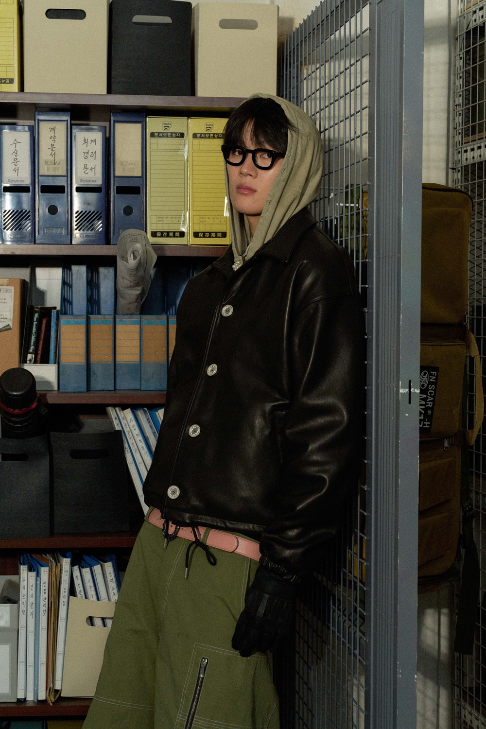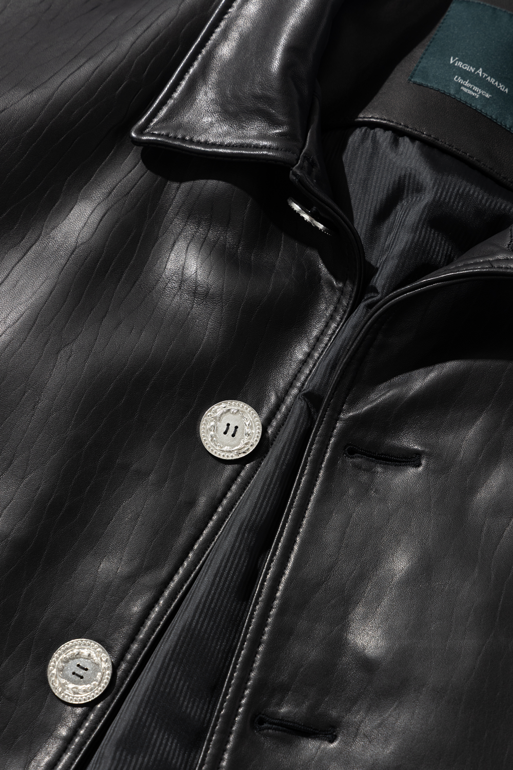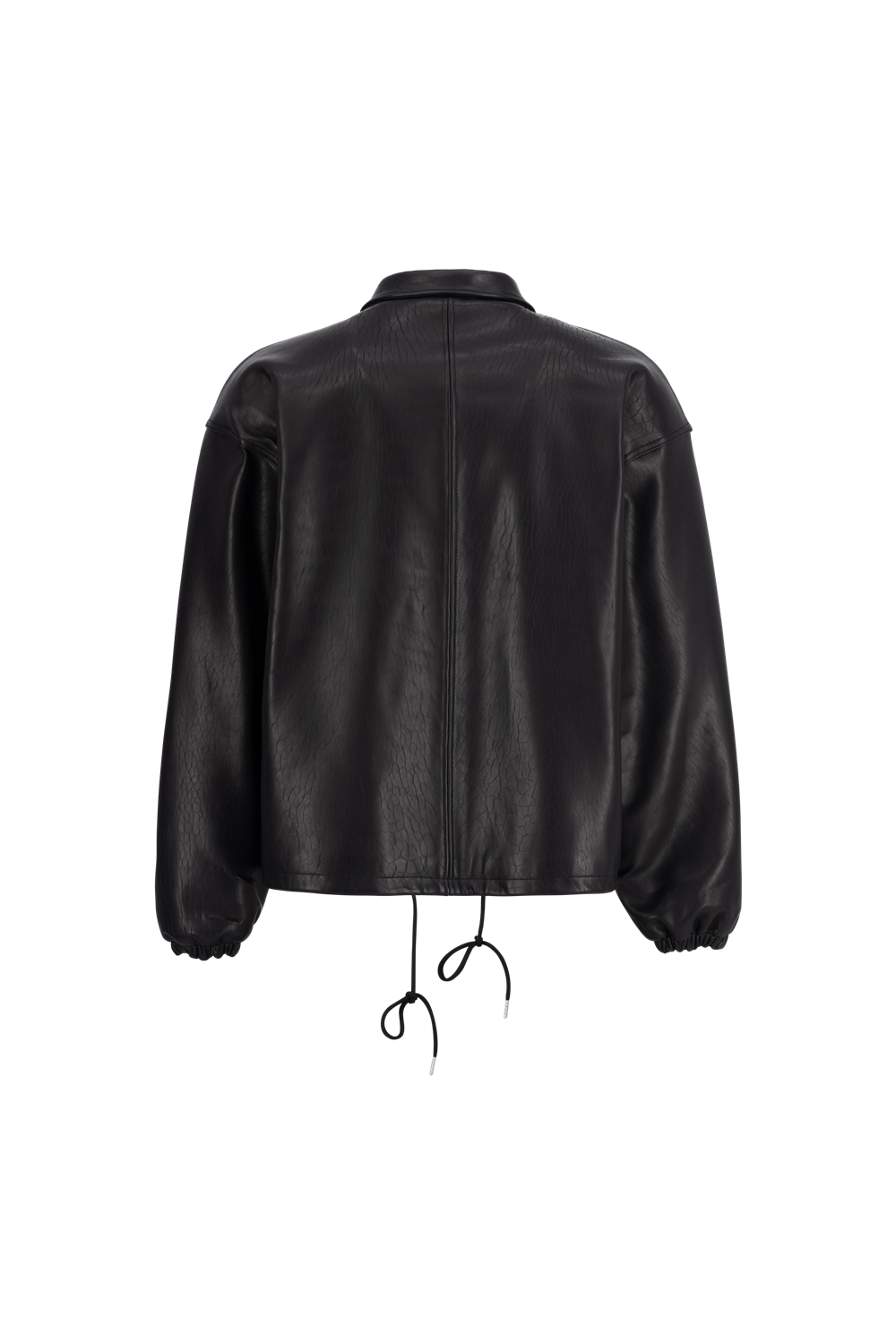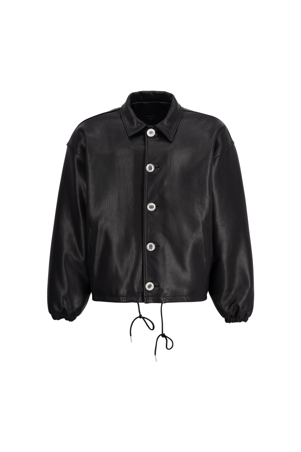 25FW FLORAL SILVER BUTTON LEATHER COACH JACKET - BLACK