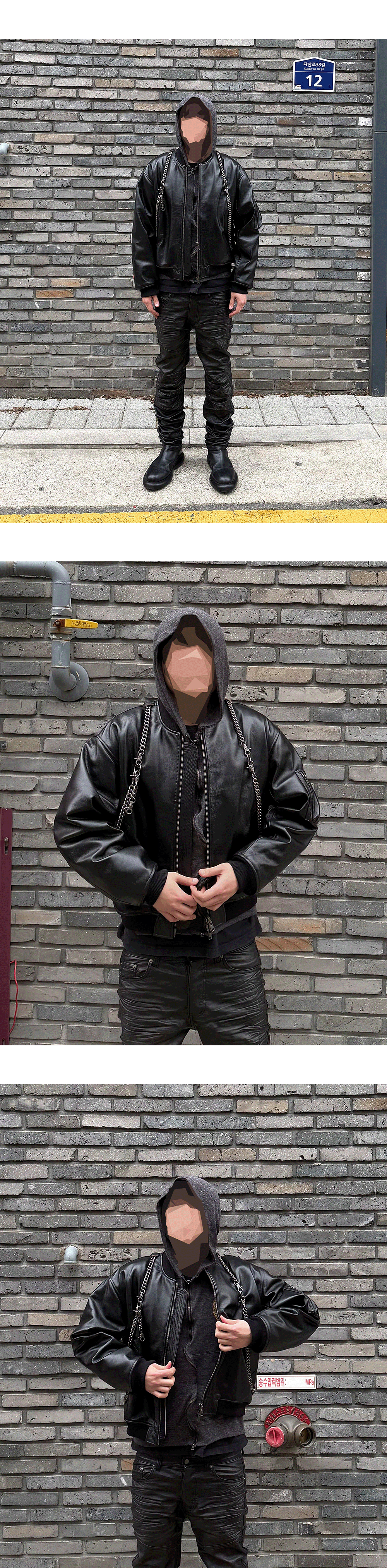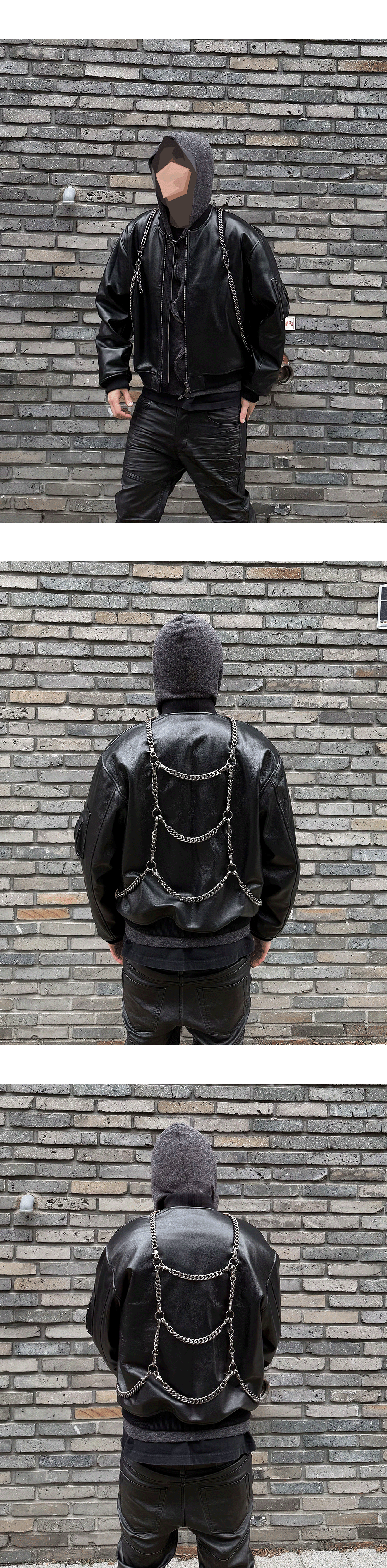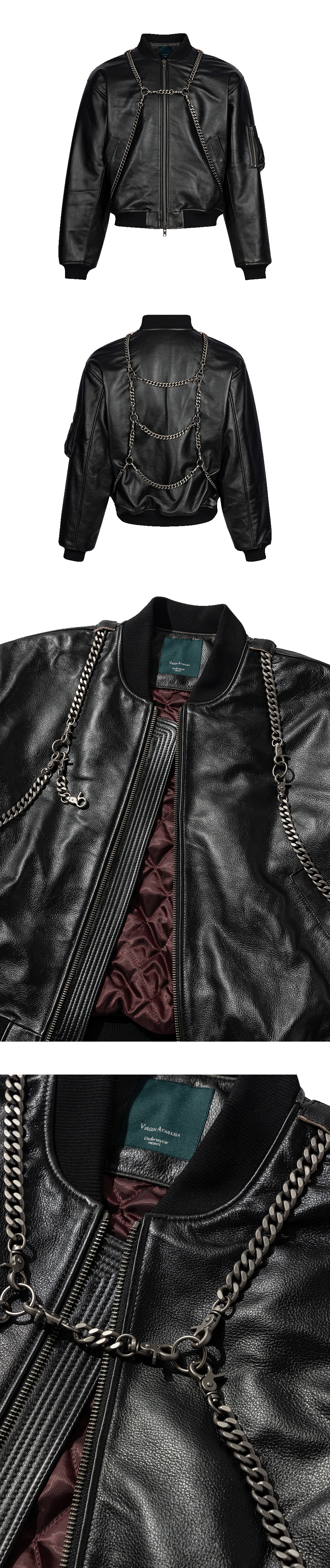 A leather bomber featuring a detachable, heavyweight chain