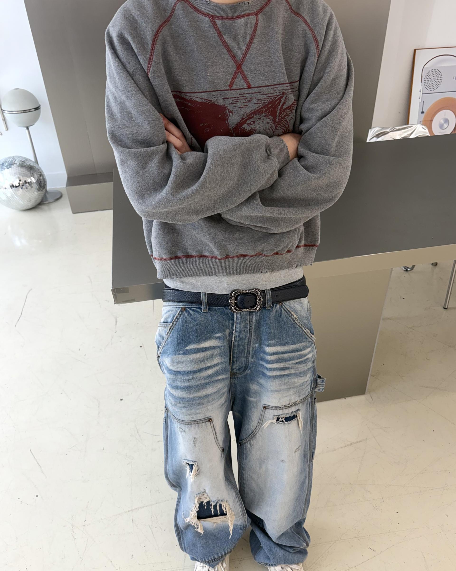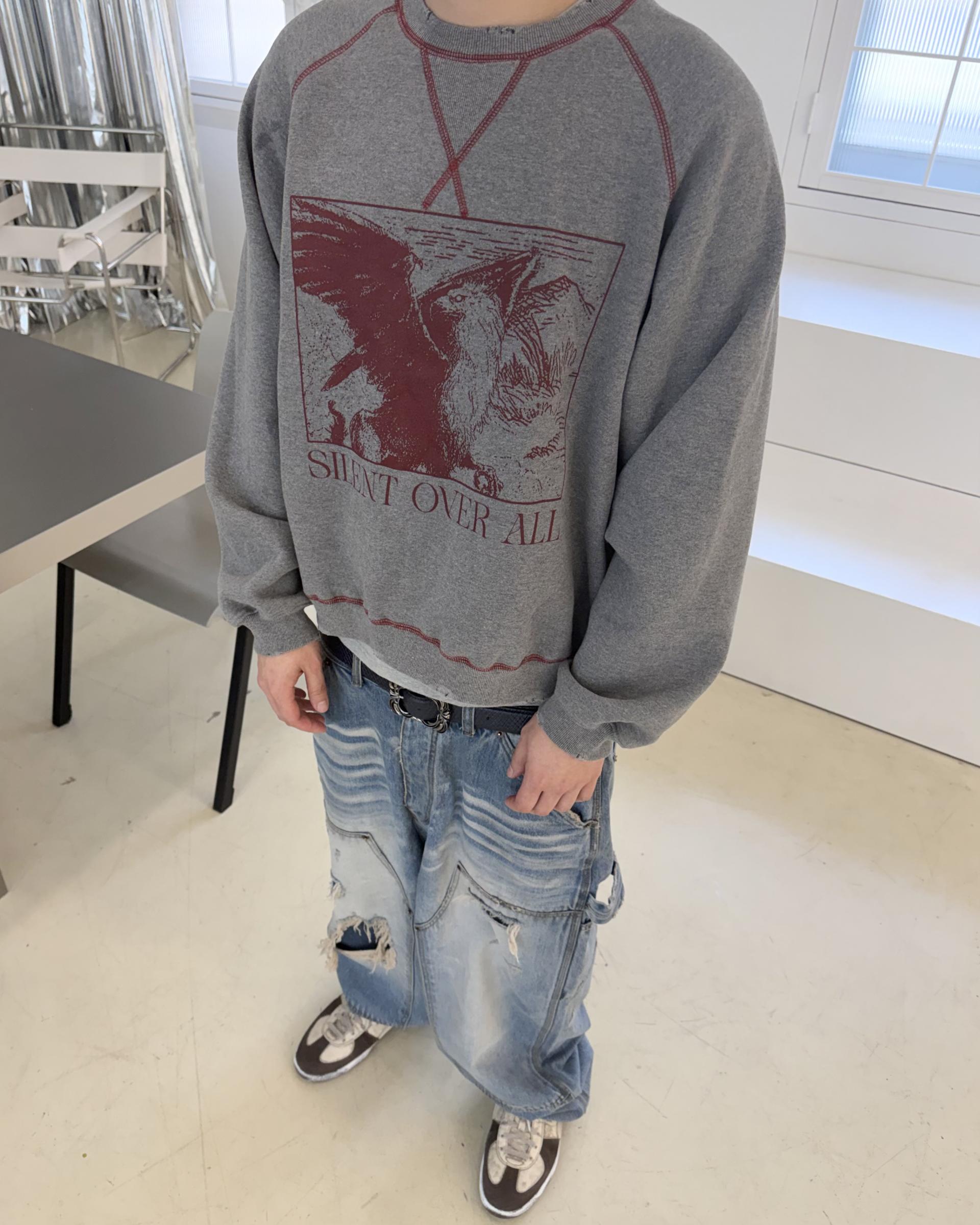 25FW SILENT OVER ALL GRIFFIN VTG CREWNECK - MELANGE GRAY